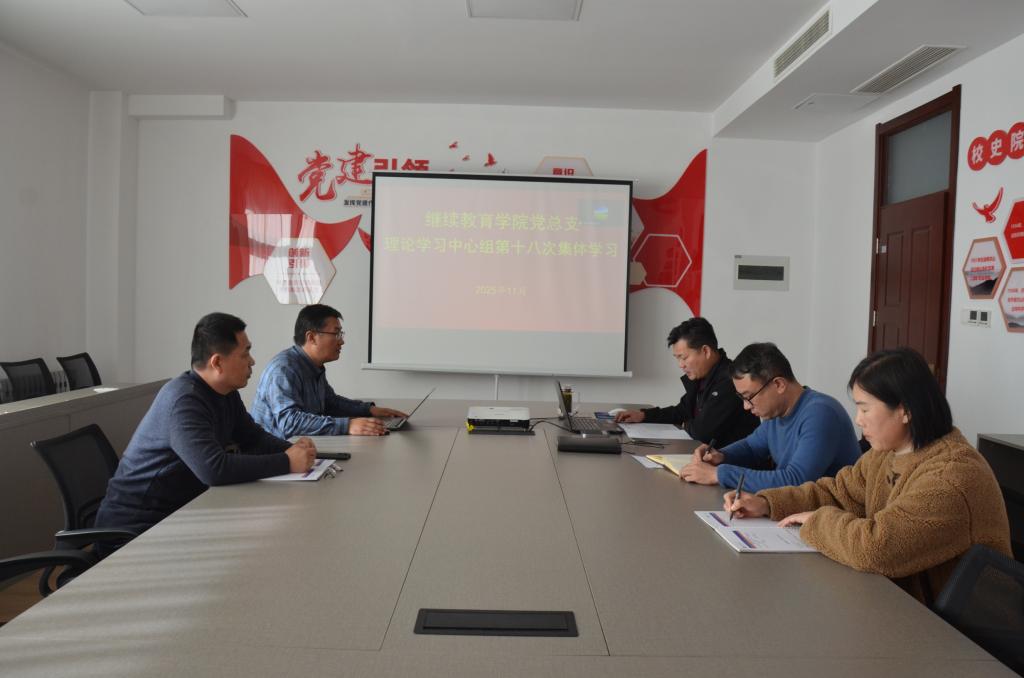 11月27日,继续教育学院党总支理论学习中心组开展2025年第十八次集体学习,党总支书记贾长响主持学习,理论学习中心组成员参加学习。